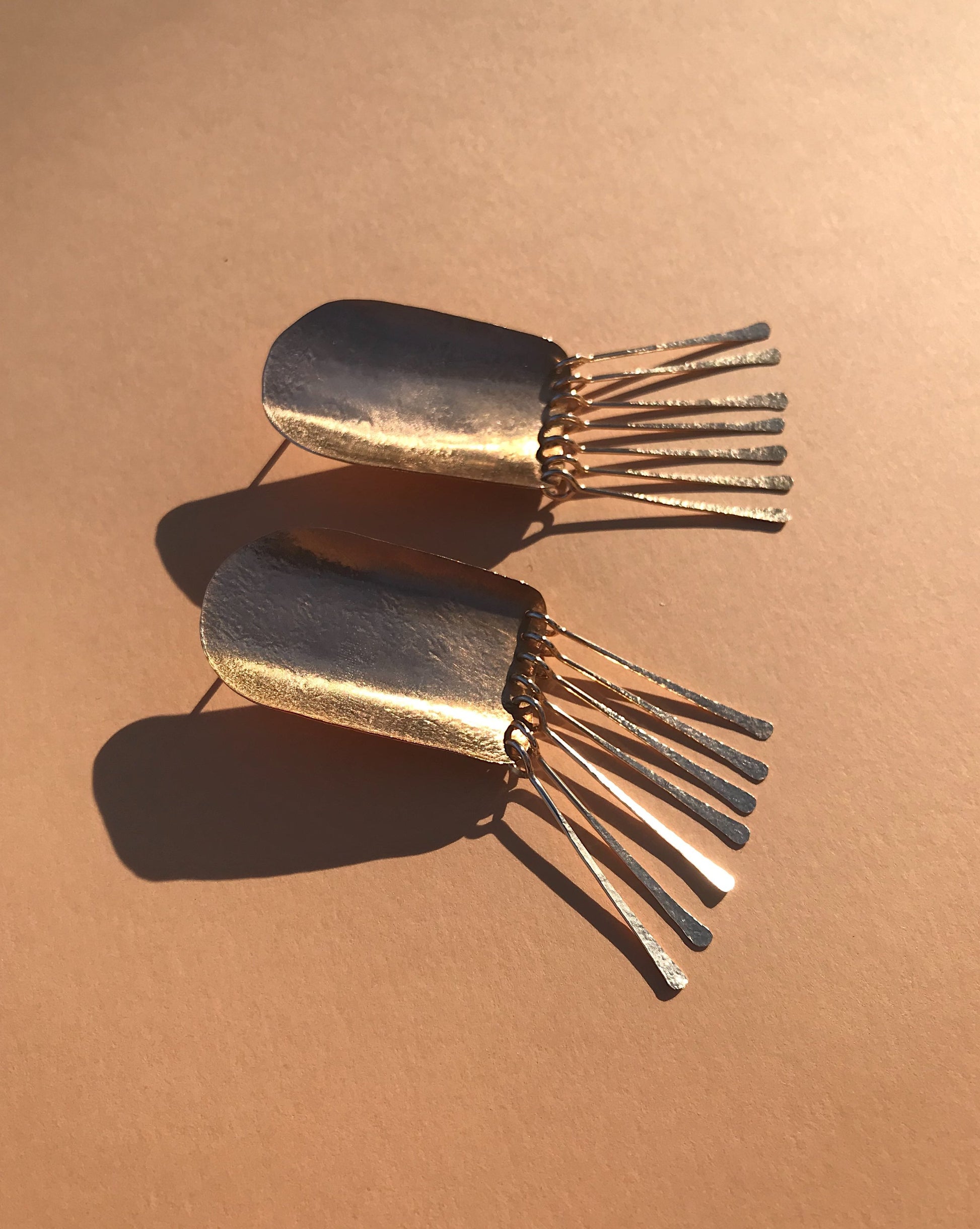 Available with the the option of ear hook or ear post in sterling silver or brass with 14k gold fill and brass with patina and 14k gold fill.